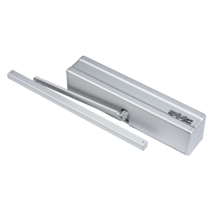 Motor 220V, pentru uși batante automate, de interior, de la 70 cm până la 140 cm, cu unitate de comandă incorporată și carcasă din aluminiu anodizat.