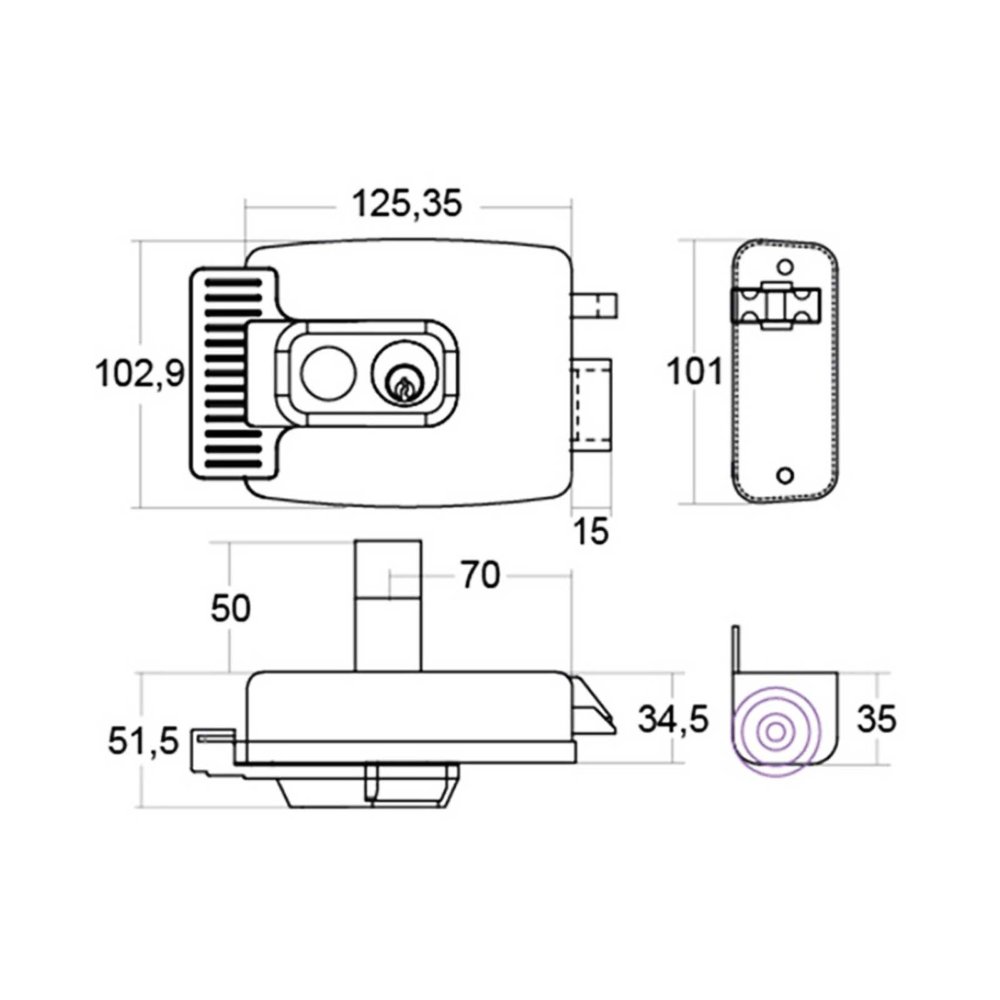 Yală electromagnetică aplicată, completă (butuc 3 chei). Varianta pe DREAPTA. Alimentare: 12Vac/3.5A. Timp deblocare: 1 ... 2 s